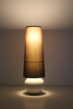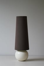 The base has lived a couple of lives with two different owners; one on Shore and the other South Auckland; the shade was found in a little op shop in Warkworth. The lamp was then made by hand in our studio in Mangawhai.